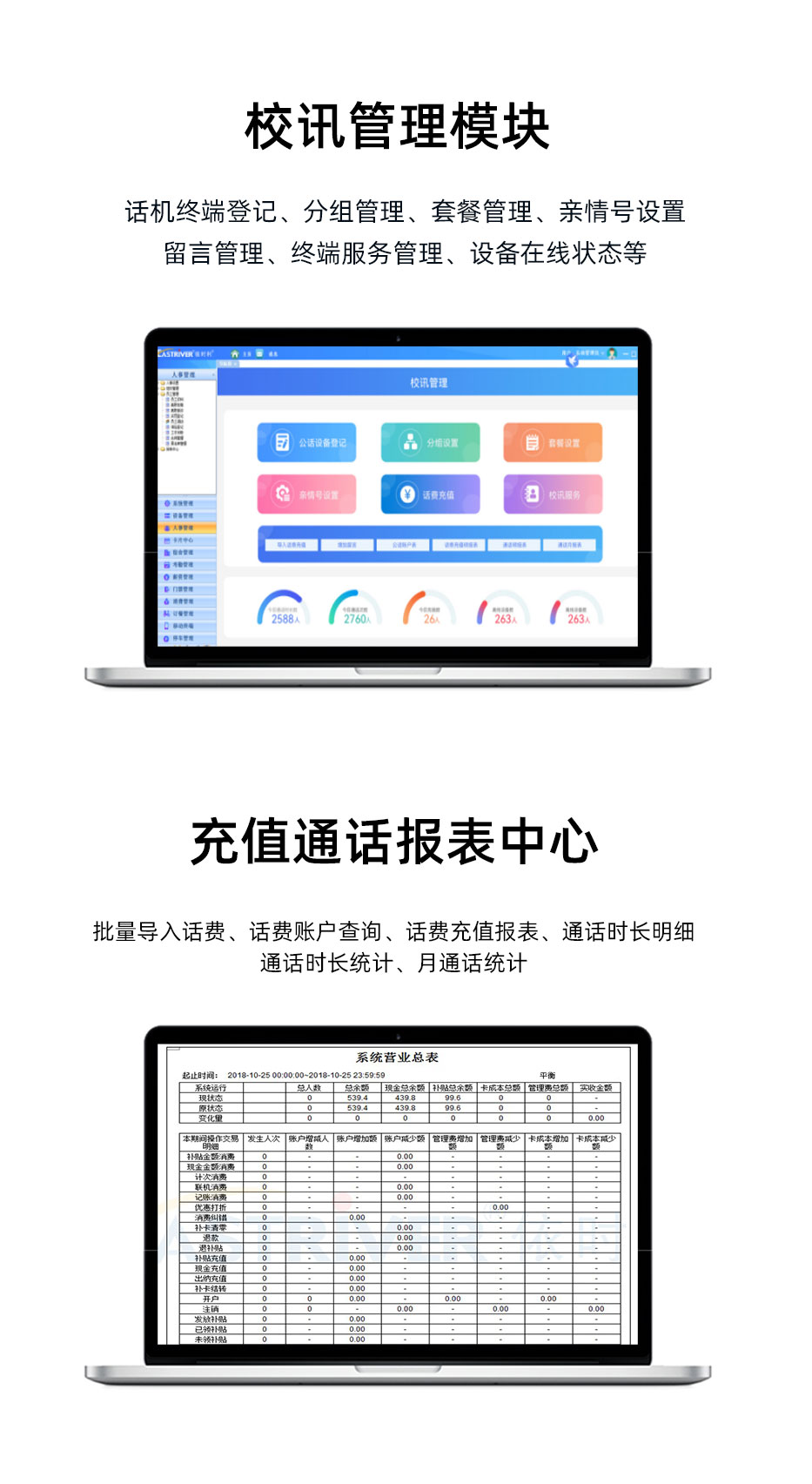 人脸识别校园话机可应用于人脸识别相关生态系统,依时利人脸机接入的平台系统可扩展用于人脸识别考勤管理、人脸识别消费管理、停车管理、人脸识别访客管理、人脸识别通道管理、人脸识别电梯管理、人脸识别门禁管理、人脸识别管理、会议管理、食堂管理、人脸识别订餐管理、人脸识别点餐管理、宿舍管理、水控管理、电控管理、短信管理、邮件管理、自助充值管理、手机APP管理、自助服务管理等20个应用模块。平台统一系统管理,一卡一库架构,支持模块式叠加功能,全面形成“卡码脸”数智化平台,支持个性化定制。