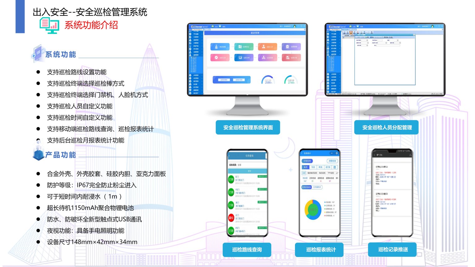 依时利企业/校园安全巡检管理系统是通过统一管理平台/数据库/终端/手机端来实现综合管理,巡检系统是利用信息技术,对重点区域(办公楼、宿舍楼、车间、研发楼)进行定期的安全检查,以便发现和整改安全隐患的系统。系统可以制订灵活的巡检计划和任务,实现对巡检对象信息的收集和核实,提高巡检效率和质量。利用射频卡、智能巡检棒等技术,方便扫描电子标签信息,实现智能化巡检。系统可以对发现的问题进行上报或闭环跟踪管理,及时通知责任人,保证问题得到快速有效解决。